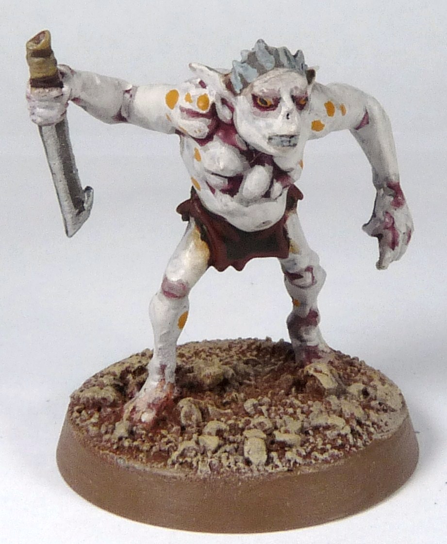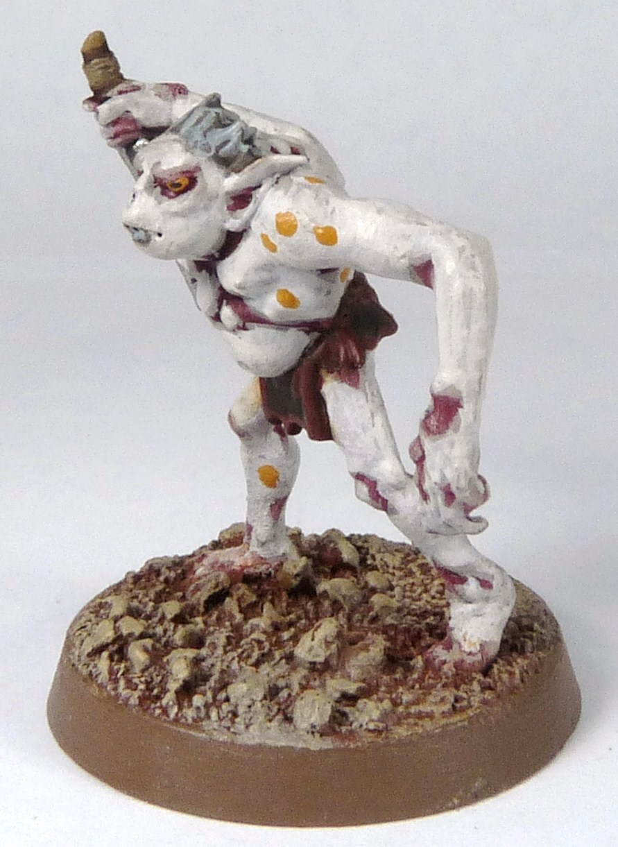 J'ai tout de même un peu peint, j'ai fait une nouvelle version de la fig test de mon armée Gobelins de Gobelinville, je pense avoir un résultat proche de ce que je voulait :